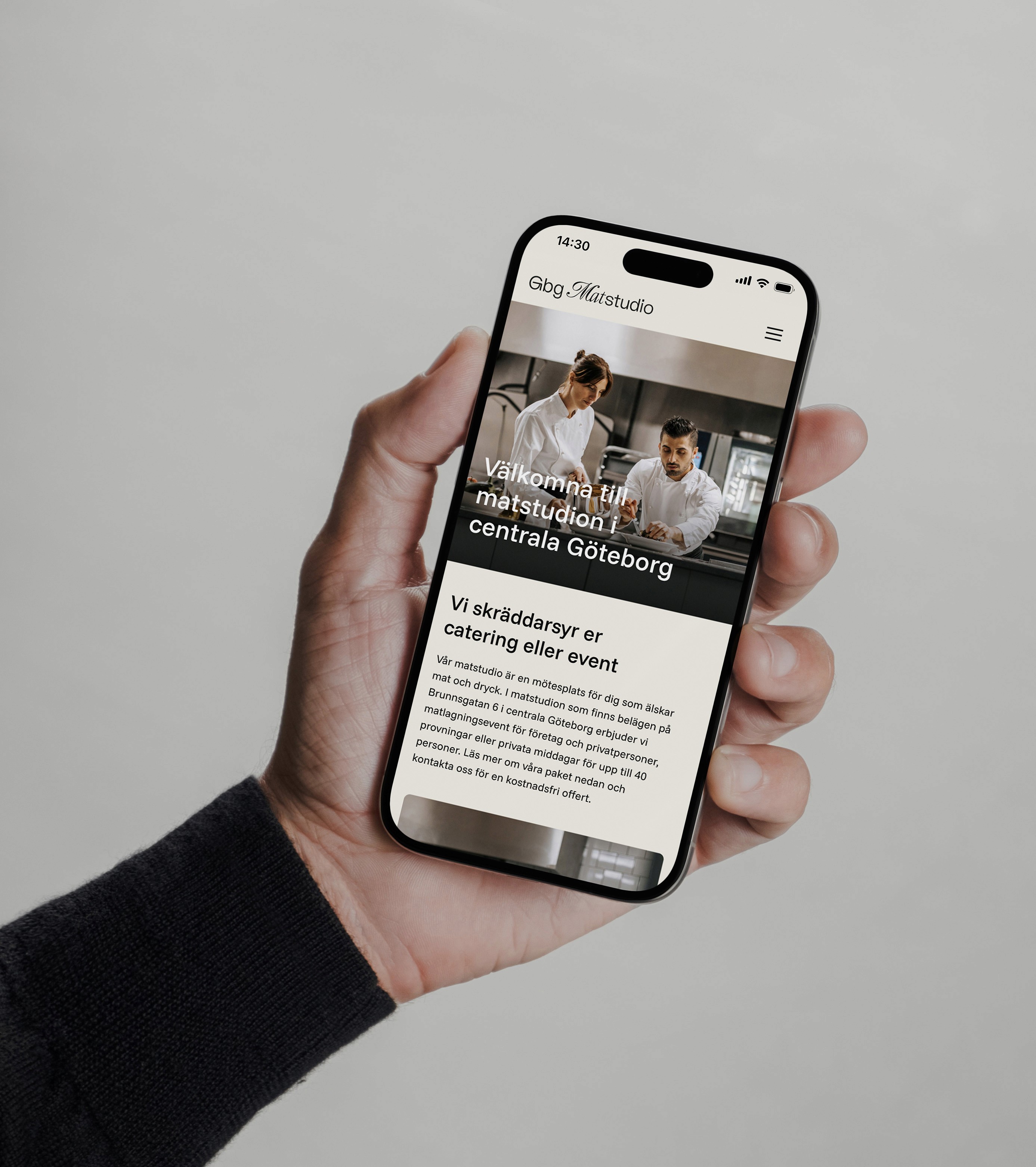 I matstudion som finns belägen på Brunnsgatan 6 i centrala Göteborg erbjuds matlagningsevent för företag och privatpersoner, provningar eller privata middagar för upp till 40 personer. Kunden ville ha hjälp med re-branding av varumärket. Allt från logotype, typsnitt, färgval, fotobrief och uttag på hemsida och skyltar mm.